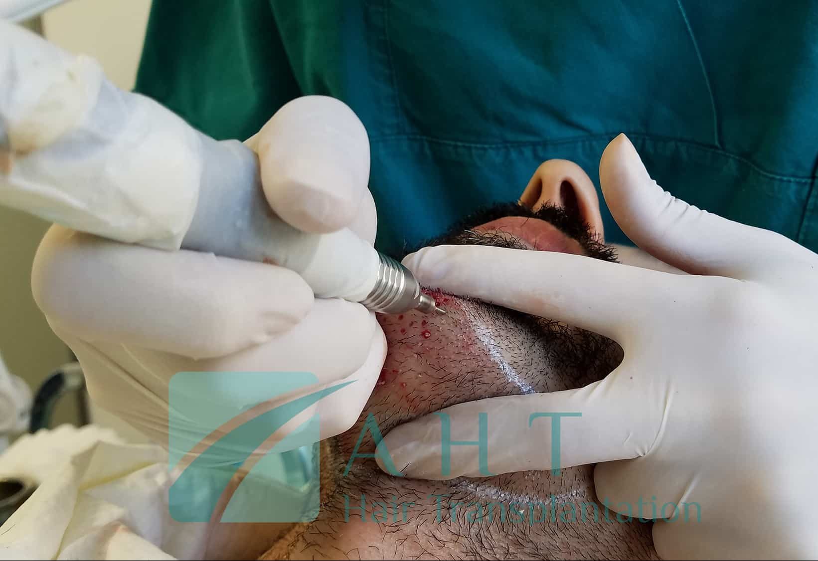 In unserer Klinik, haben wir durch die neuzeitliche AHT Methode Haarverpflanzungen, wo wir auf den schütteren Kopfteil Barthaare verpflanzt haben. Vor dem Verfahren hat unser Spezialisten Team eine mathematische Einschätzung erstellt, um festzustellen wie viele Barthaare entnommen werden können und dass dabei der Bart nicht gelichtet wird. Während des Verfahrens haben wir einen Punch-Durchmesser von 0.8 und 0.9 Millimeter verwendet.